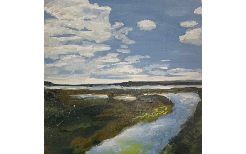 <i>INLET #1</i>, 2024, Oil on canvas framed in oak, 2024, 77 x102.5cm